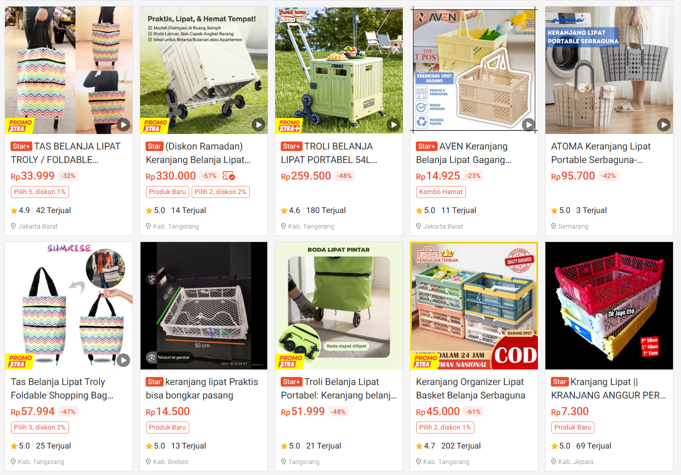 13. Keranjang Belanja Lipat atau Tas Reusable